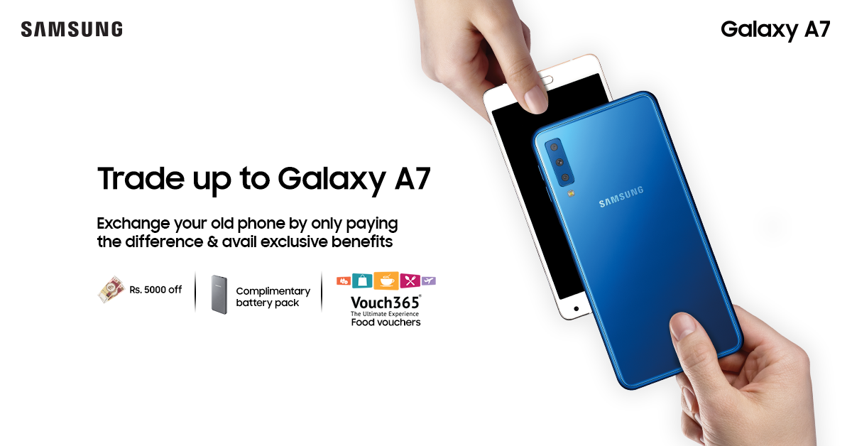 Samsung is now bundling Samsung Galaxy A7 with a free 10,000 mAh battery pack. This promotion also gives purchasers 10 free food vouchers and this bundle promo is valid for a limited time at all Samsung Hero Shops. For consumers who wish to trade up their old phones, Samsung offers a ‘Trade Up’ option whereby by paying the price difference between purchasing a new A7 and their old phone they can further avail a PKR 5000 discount and a free 10,000 mAh along with 10 food vouchers. Both these offers are available at Samsung Hero Shops.
