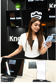 At the booth, famous techies and multiple renowned people were spotted trying out the innovative products and Knox business solutions.