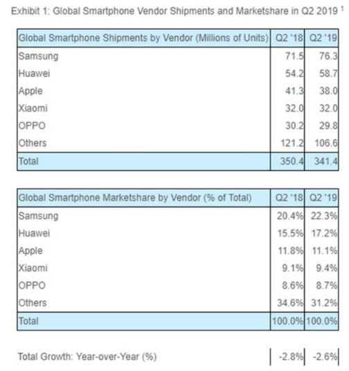 Global smartphone shipments are down 3 percent annually to reach 341 million units in the second quarter of 2019, according to the latest statistical research from Strategy Analytics. The overall smartphone shipments around the globe continue to stabilize.