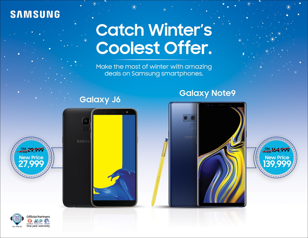 The two phones which are part of this winter sale are Galaxy J6 and Galaxy Note 9. Customers will now be able to purchase a Galaxy J6 smartphone for Rs.27,999 instead of Rs.29,999 while the price for Samsung’s Galaxy Note9 has also been slashed from Rs.164,999 to Rs.139,999.