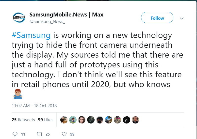Most Android makers out there, except for Samsung, have already copied the iPhone X design this year. Some Chinese companies explored other all-screen designs as well, replacing the notch with slide-out camera mechanism. That’s definitely not the way to go for Apple and Samsung. Instead, future iPhones and Galaxy devices may feature screens that extend from corner to corner, with no visible bezels whatsoever. The selfie cams would still keep their position at the top of the handset, but they’d be placed under the screen. Samsung Display, which is already a main screen supplier for the iPhone X, is already developing screen technology that would let it place the camera under the display, according to a tip received by @Samsung_News_