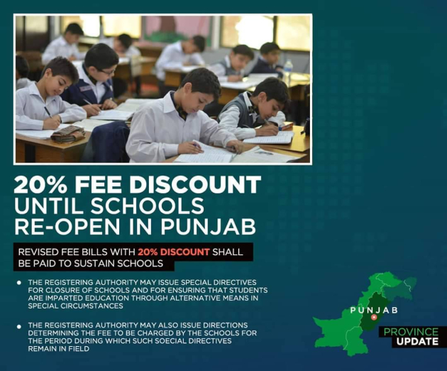 Earlier this week schools in Punjab are obliged to provide a 20% discount in terms of fees to the parents. The discount is applicable until the schools are reopened. The rule was published by the Punjab Education Minister Murad Raas. The main aim behind this discount is to offer relief to the parents during the nationwide coronavirus pandemic.