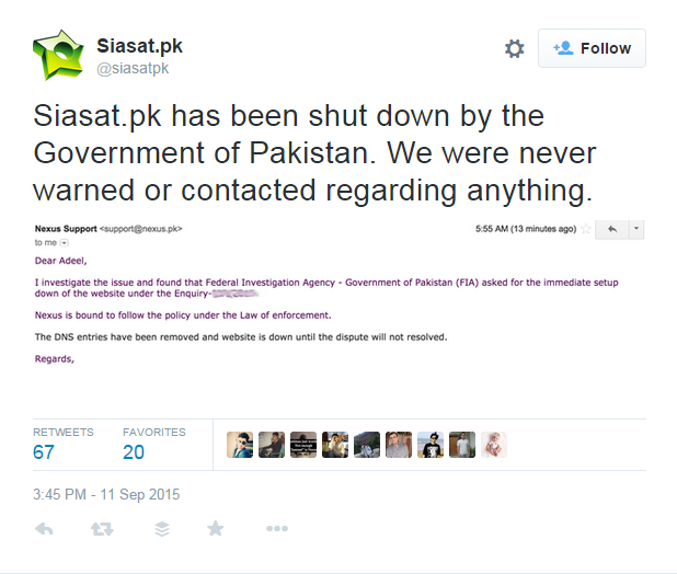 According to Siasat, the organization was never reached out or warned of any activity which the government deemed inappropriate. The website was raking millions of users per month owing to its focus on the changing political conditions of Pakistan.