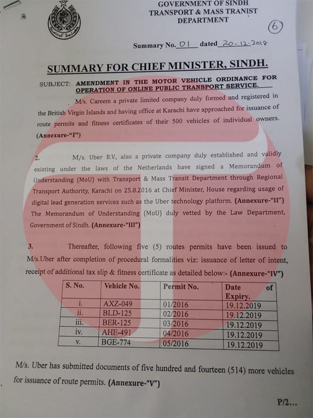 As per the above summary, both Uber and Careem have submitted documents for route permits for more than 500 vehicles each. While speaking to Express Tribune, a Careem spokesperson said that they were willing to obtain fitness certificates and route permits for their vehicles but the regulatory process must take on-board ride-hailing companies.