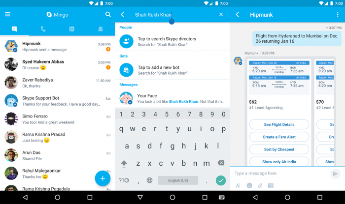 Skype, a video calling application, is currently working on SMS relay feature to bring SMS feature to Android users. In addition to texting and calling functionality, Skype Mingo users will also be able to enjoy Skype bots, which are virtual assistants for numerous tasks like Baymax (health care companion), Zoom (schedules meetings), Skyscanner (for finding flights), Bing news (web search), gaming bots and more.