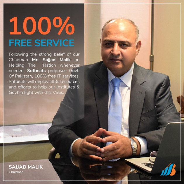 We all know the COVID’19 Pandemic Situation and how it has affected the economy so far. Given the whole scenario, Softbeats has decided to give back to the community when it is most needed. In this regard, following the vision of our chairman Mr. Sajjad Akbar Malik & the team has decided to give 100% FREE IT SERVICES to the Government of Pakistan to fight against the COVID-19.