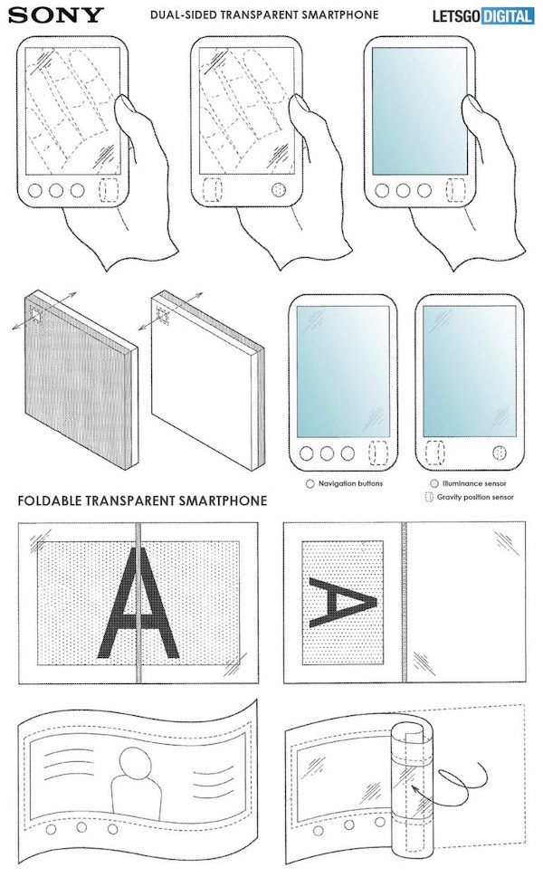 If this concept is realized, Sony will become the first smartphone company to present the concept of a transparent foldable phone. The second triumph would be the ability to roll the phone of course. But for now, all the ideas are just in the form of patents with no working prototypes in sight.