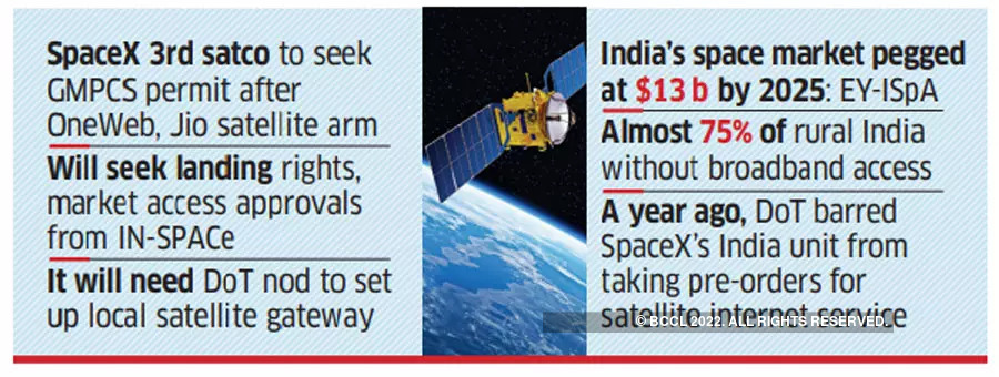 “SpaceX will very soon apply to the Indian authorities for a GMPCS license to begin satellite broadband services in the nation,” a person informed about the subject told ET. Separately, the corporation will apply to the government for statutory authorization for landing privileges and market access.