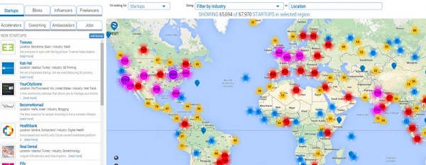 You can filter the map at the website by industry and location or for freelancers by discipline, special skill set and hourly rate. Any part of the world can be zoomed in to get more information about startups of that area. A side panel will list the startups of the area along with short description which can be claimed and updated or shared on social media. Moreover, you can add your startup to the site in case they missed it.