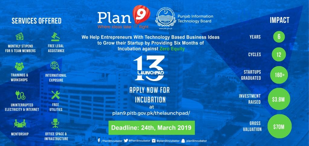Plan9, the startup incubator of Punjab Information Technology Board (PITB), is accepting applications from technology startups all across the country for its Incubation Cycle 13. This ground-breaking event will be replicated in five cities including Lahore, Karachi, Islamabad, Faisalabad, and Multan.