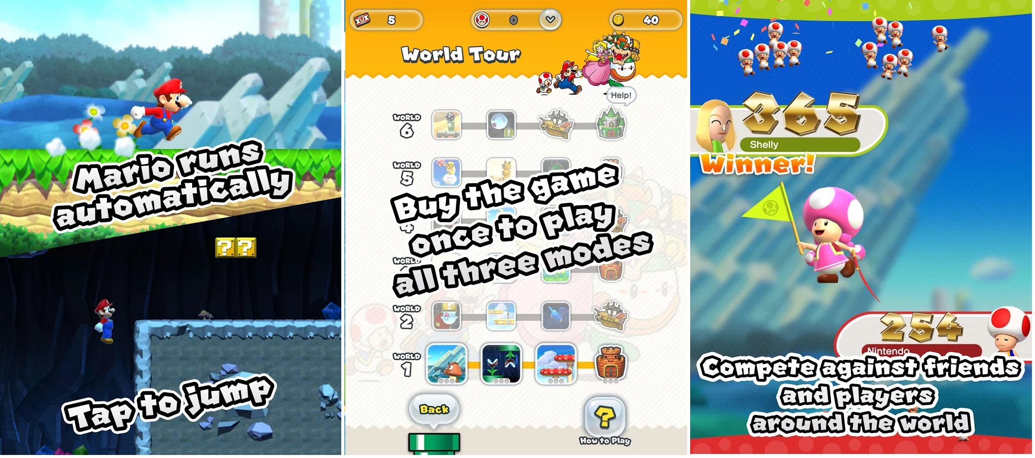 The game is specially designed for mobile devices so that users can play it with one hand. It’s the same Mushroom Kingdom once again and Mario has to rescue his Princess Peach by crossing all the hurdles in his way. Mario runs forward on his own but relies on the tap of a single finger to jump over obstacles, avoid enemies, pull off stylish moves, collect coins and reach the flagpole to complete courses.