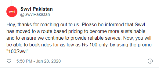 Swvl’s users are backlashing the high rates via social media platform these days. After receiving multiple complaints via twitter and Facebook, the company finally came out and posted a statement saying the increase in charges is implemented for ensuring sustainable and quality service to the user.