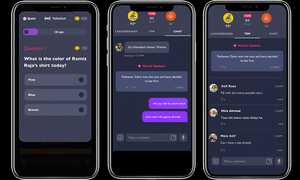 TalkShot is an app that allows you to hang out online with your friends and play Quizzes to win prizes. Every PSL is a moment of celebration. It’s a moment to express your passion for your favorite team and experience the highs and lows of a game with your friends. Talkshot enables you to connect with your friends and fans and have a conversation while following the game live