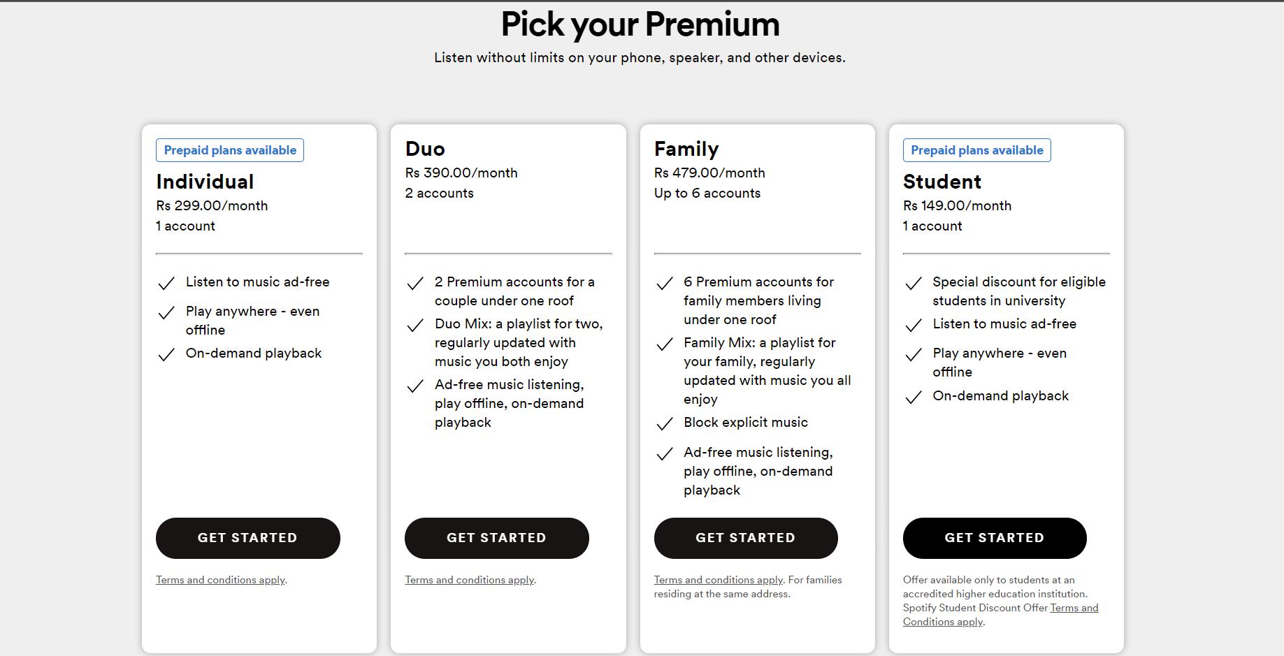 Based on the differences it just goes to show that the Premium version is a much more viable option. However, it is to be noted that new users get to have a free month trial for Spotify Premium. Below you can check out the different pricing plans for the platform however for more details you can click here.