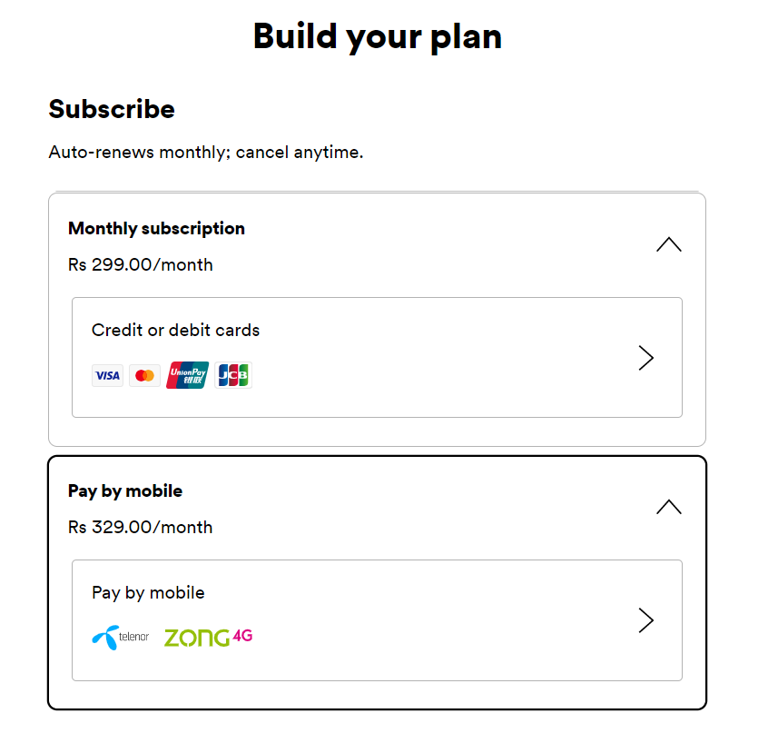 For the Students and Individual plan another benefit is you can use your mobile balance to pay for Spotify Premium. However, this is limited to Zong and Telenor SIMs only. Other plans require payment via credit or debit card. Both methods are highly reliable and notify you within seconds that you have paid for the Premium.