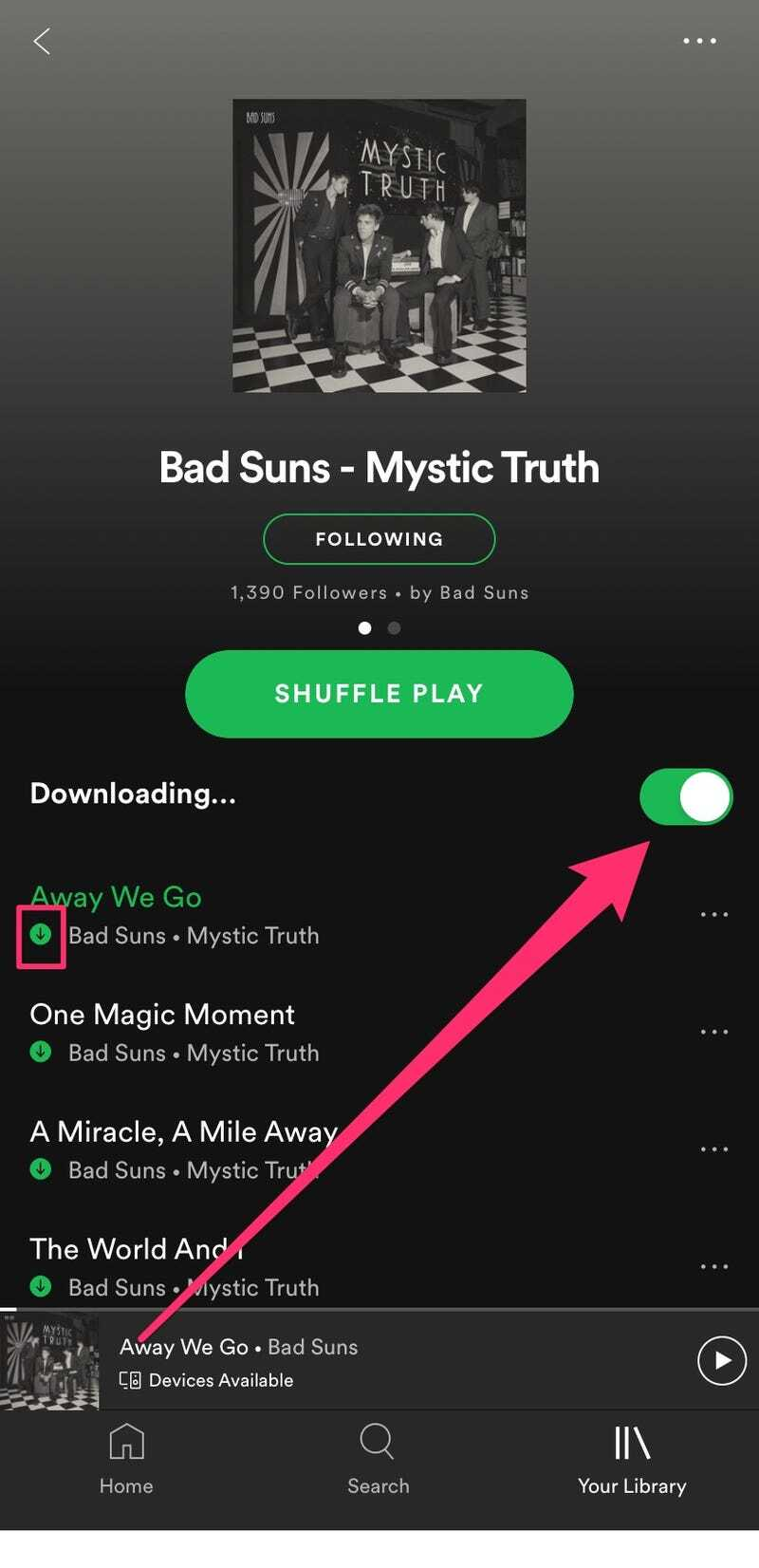 One of the most requested features is the downloading of playlists and albums for offline listening. For this, you need to ensure you have Spotify Premium and then you can simply head over to the album or playlist and click the download button where it will automatically download the playlist via WiFi or cellular.