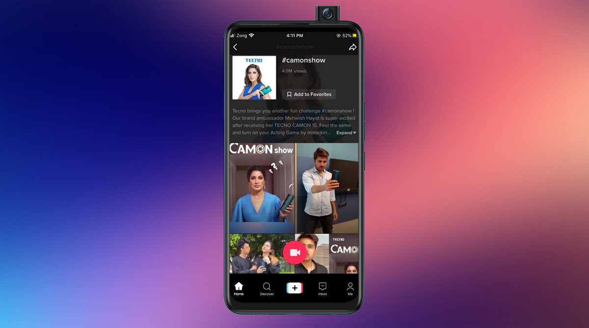 A very prestigious smartphone brand TECNO’s #CamonShow challenge is creating buzz all over the media. This amazing Challenge was first introduced by the TECNO’s Brand Ambassador Mehwish Hayat, the challenge has now hit 63.4 million views since the day of launch.