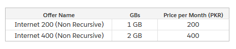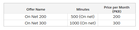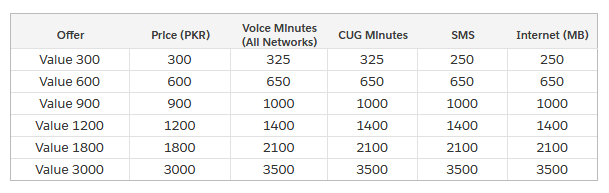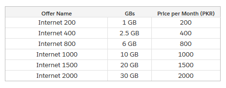Telenor is currently offering 6 of these plans ranging from PKR 300 to 3000.