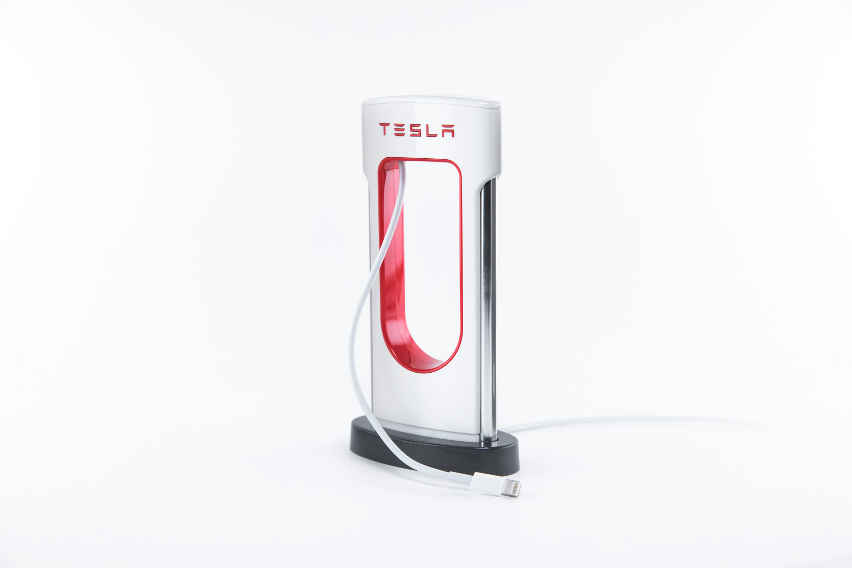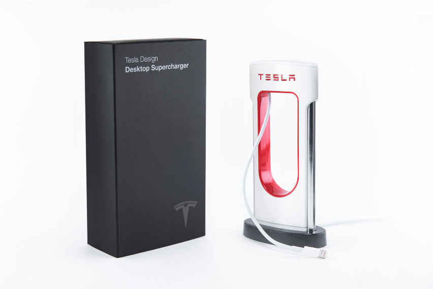 Let’s talk about the Desktop Supercharger now. The best thing about the charger is how it looks. It is a full replica of Tesla’s car chargers and literally, the only difference in their looks is the size. Tesla says that their team worked used the same process they use to manufacture car charger and to replicate every detail found in the scale model. Tesla’s new phone charger, as the name suggests, sits on a table and comes with a USB port. You can connect any USB cable with it and charge anything you want.