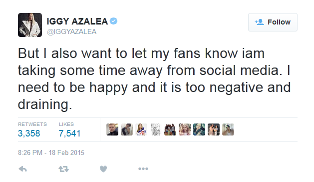The initiative taken by O’Neill to quit social media takes us back to an incident that occurred earlier this year when a 24 year old Australian singer, Iggy Azalae decided to take time off social media after she started to get negative comments. People posted absurd comments and hate speech on her pictures which caused her to react this way. Her story is different from O’Neill’s and highlights how cruel people can be while using their virtual profiles.