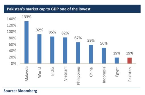 The report also suggests the GDP is expected to grow by 2.0-2.5% in the Fiscal Year 2020-21 (FY21). The average GDP growth in the last 10 years in 3.5%. Pakistan’s market cap to GDP ratio is still on of the lowest around the world. Moreover, monetary tightening is expected to start in May 2021 with a likely increase of 75-100bps in the policy rate by the State Bank of Pakistan (SBP) in 2021.
