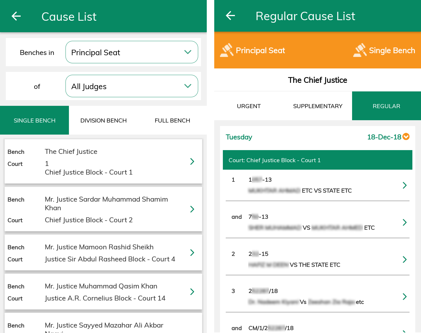 The app allows users to view the cause list for any bench or judge, allowing them to follow the proceedings of the court easily and effectively.