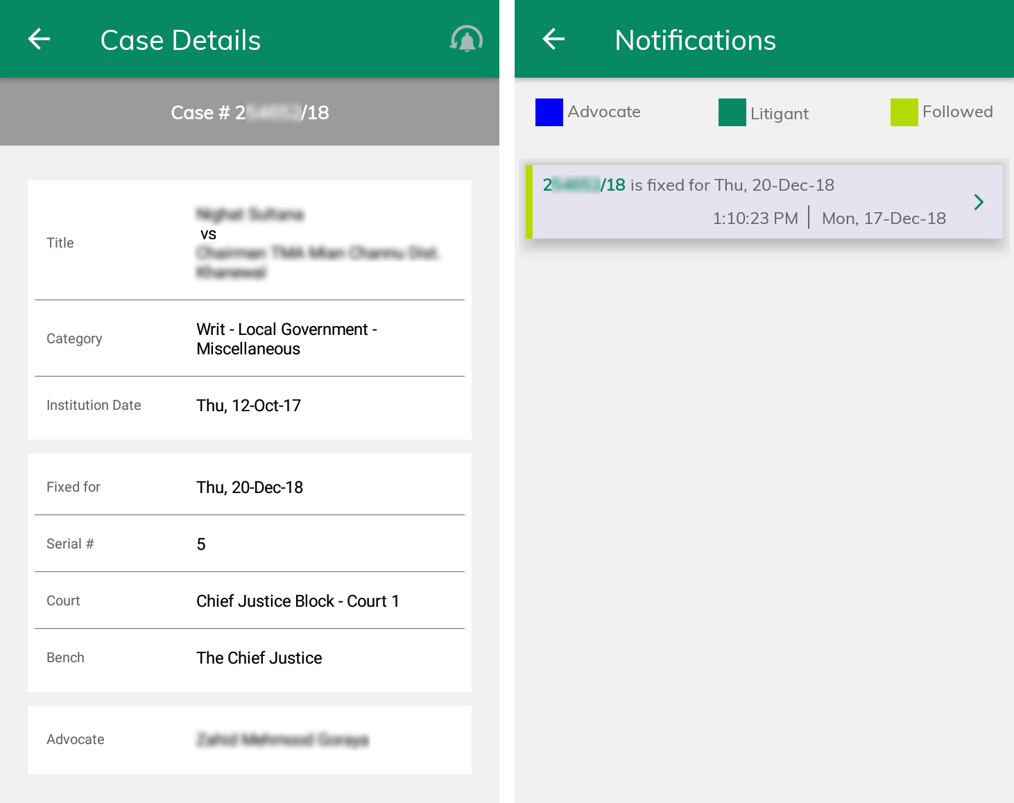It also allows viewing details of any case, displaying information like the next date fixed for hearing and the court in which the case is being heard at the moment. Users can follow a case too, which will help them keep track of any changes in hearing dates or any other detail.