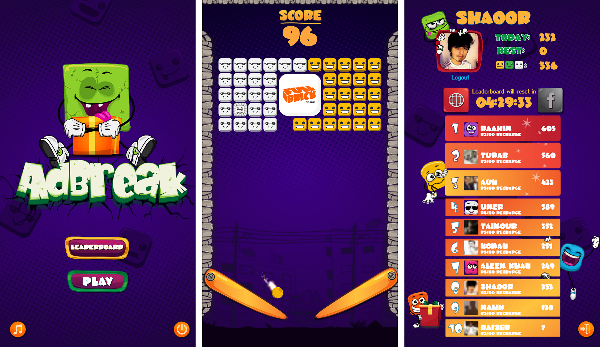 Full brick Studios, a new app development company based in Pakistan, has released its first game called AdBreak. This game can help you win cash prizes, mobile top-up, bitcoins and many other items, provided you make it to the leaderboard.