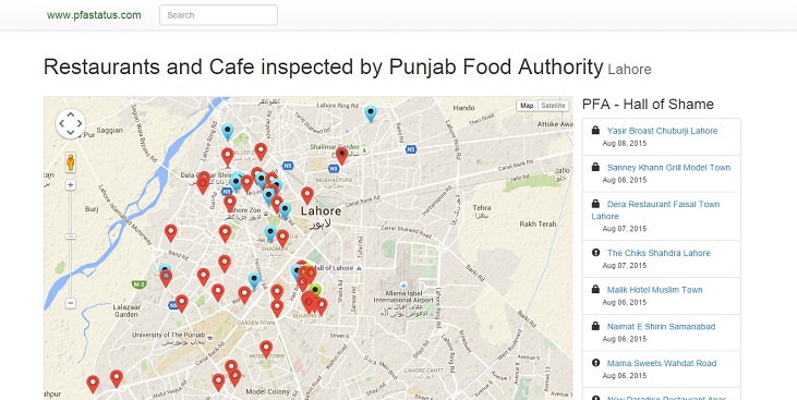 In the midst of this campaign, Asad Naeem, a web developer from Lahore, has taken this opportunity to launch a website called PFA Status. The website in not officially associated with the PFA, but serves a good purpose. The site is basically a visual representation on a Google Map of all the eateries that have been raided by the PFA. It also mentions their status – whether they have been sealed, cleared or fined. The site also has a complete list of all the restaurants in Lahore and also has their proper profile. The profile includes location details, date of the raid from PFA, status and the remarks given by the PFA.