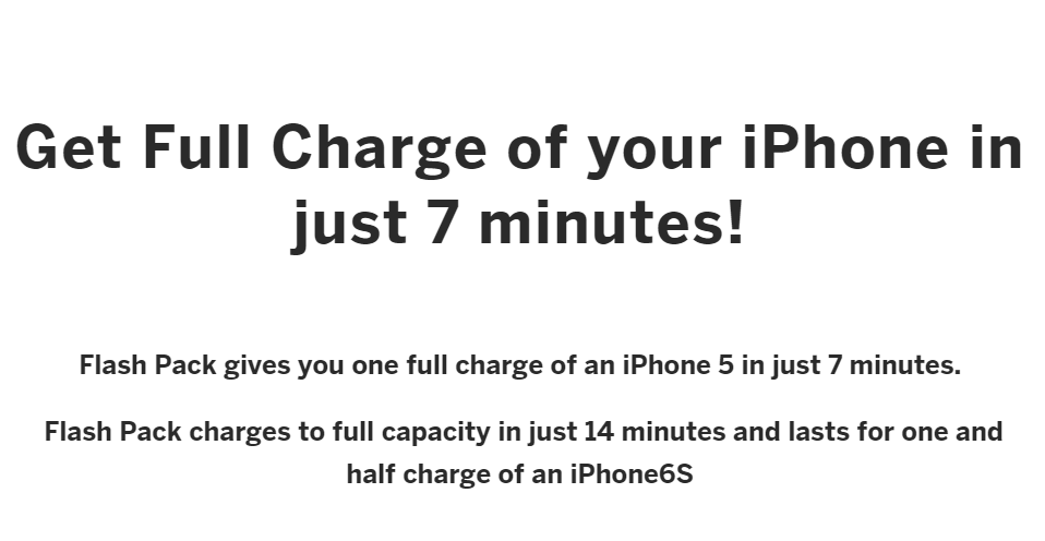 - The conventional mode can charge the Flash Pack in 2 hours, using any standard micro USB cable (1A).