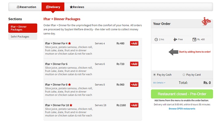 EatOye, in order to keep the process transparent for the users, has collaborated with Saylani Welfare Trust. As soon as the order for Iftar of needy will be placed, Saylani’s Team will be notified and their rider will collect the money from customers’ doorsteps in an estimated time of 2 hours. The customers will be provided with details including a slip from Saylani Welfare Trust.