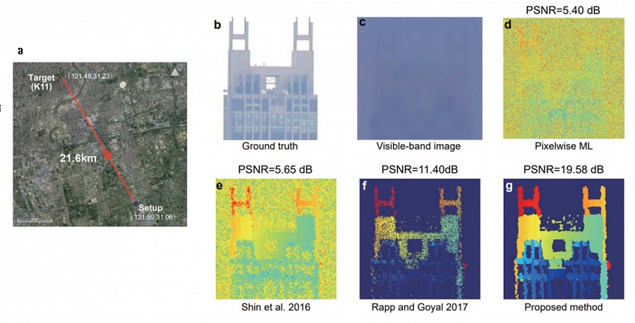 Researchers from the University of Science and Technology of China in Shanghai have figured out the way to photograph subjects from so far away, even in a very smoggy environment, by using “single-photon detectors combined with a unique computational imaging algorithm that achieves super-high-resolution images by knitting together the sparsest of data points”, as reported by MIT Technology Review.