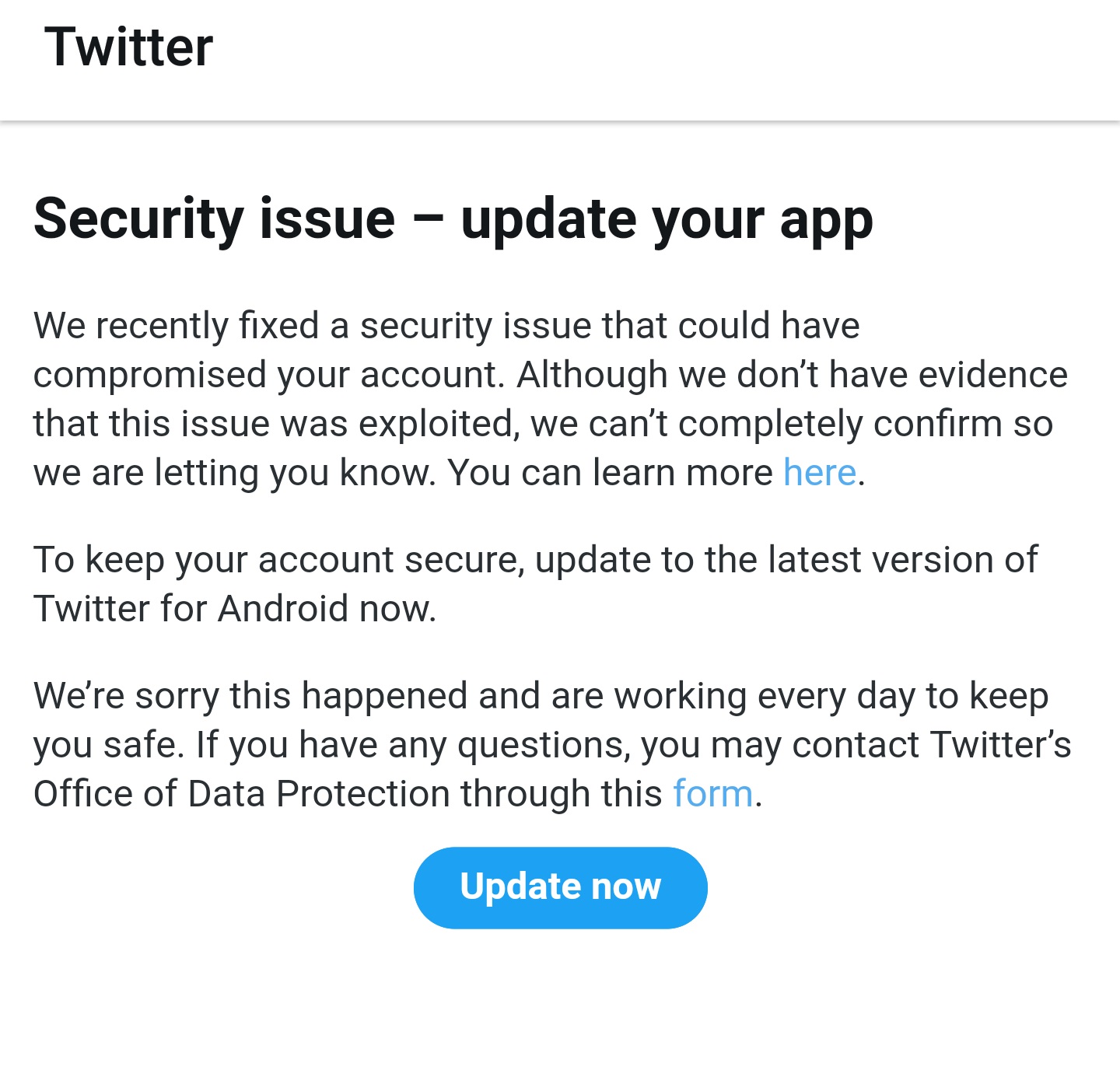 Twitter is now working day and night to fix this bug so that this feature wouldn’t be exploited by the hacking mafia. A few days ago Twitter’s android app asked the users to update the app due to some vulnerable reason. This was the reason why, the bug did not, however, affect the web version of Twitter.