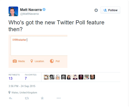 As seen here in this tweet, besides asking for the location and media, twitter is now giving the option for the polls.