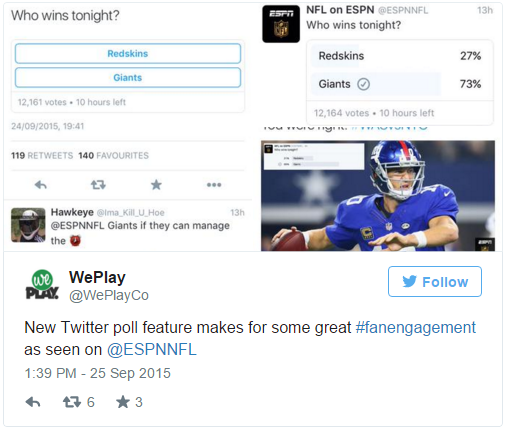 Regarding the twitter polls, the feature is embedded in the tweet itself. That means, when a user is constructing a tweet, they can chose to go for creating a poll regarding that same tweet. However, this is not compatible with third-party apps or clients such as Hootsuite or Tweetdeck.