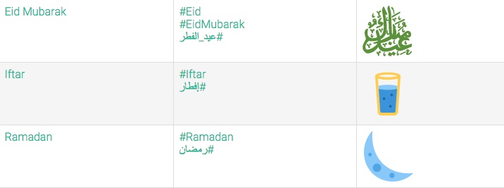 Twitter has released custom Ramadan emoji for Muslims to use in their tweets during the holy month. The three custom emoji appear using an appropriate hashtag either in English or Arabic. These hashtags include #Eid #EidMubarak, #Iftar, #Ramadan which display an Arabic Eid Mubarak, a glass of water and a half crescent moon respectively.