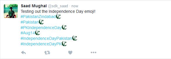 Twitter has just launched a new emoji for Pakistan, just two days prior to our 69th Independence Day! The emoji can be used if you use a hashtag that is related to the Pakistan’s Independence. The emoji has the symbolic green of Pakistan with the symbol of a crescent moon and star (as found on our flag). Here is a screenshot showing the emoji in action: