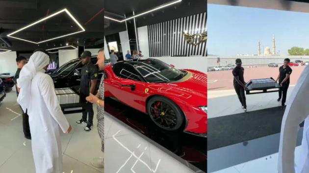 In the video, the man was filmed in traditional Emirati dress as he enters a luxury car showroom. He was accompanied by two assistants who were carrying a large tray of cash. The man is then heard asking for the highest-priced car and then rejects it, saying that at 2.2 million dirhams (nearly $600,000), it’s not expensive enough for him.