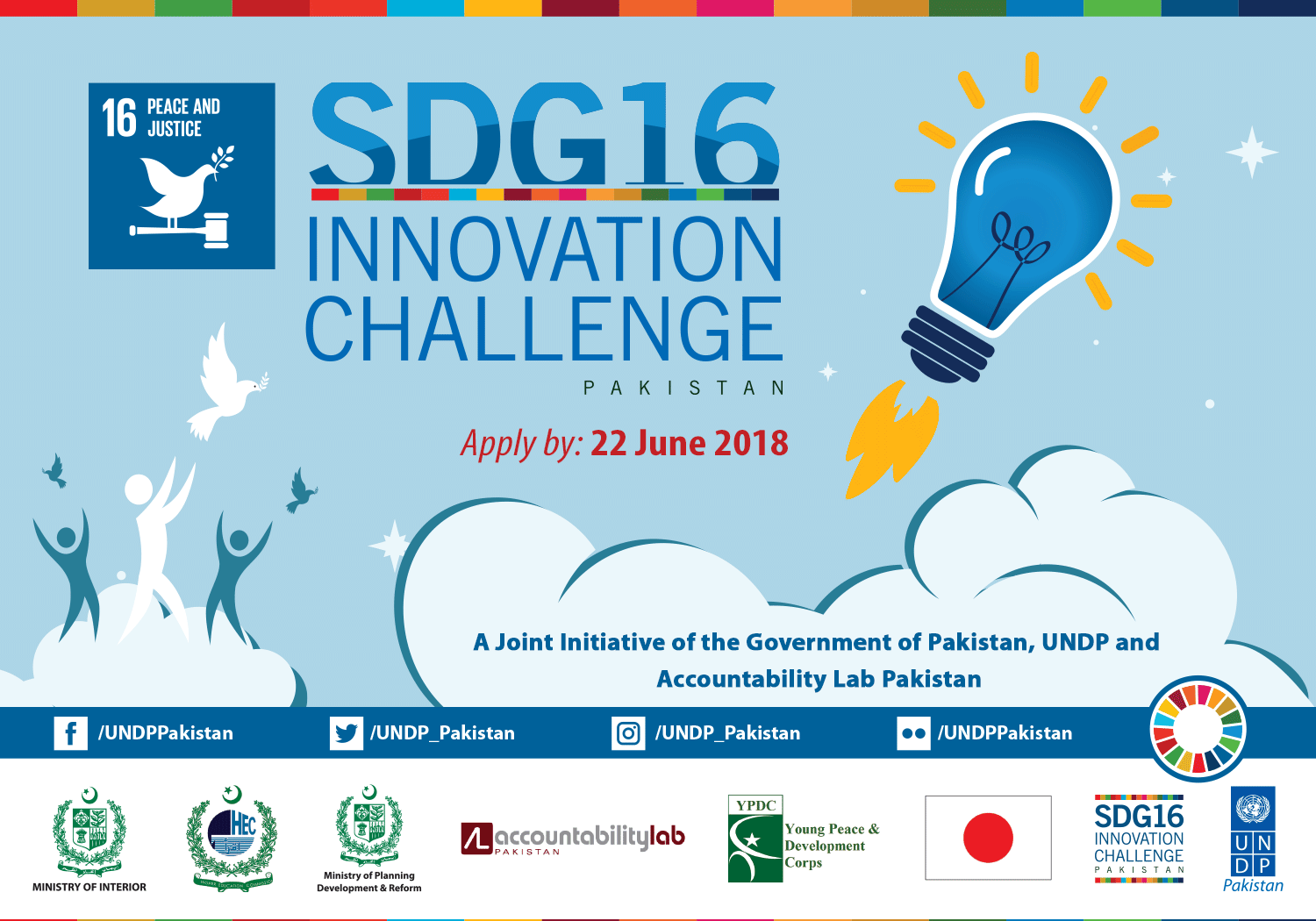 The United Nations Development Program (UNDP) along with Government of Pakistan and the Accountability Lab is inviting applications for Pakistan Sustainable Development Goal (SDG) 16 Innovation Challenge. Launched through the Young Peace and Development Corps (YPDC), the challenge is a month-long competition, where young Pakistanis can submit innovative ideas to creatively solve some of the prevailing issues like peace, justice, and accountability.