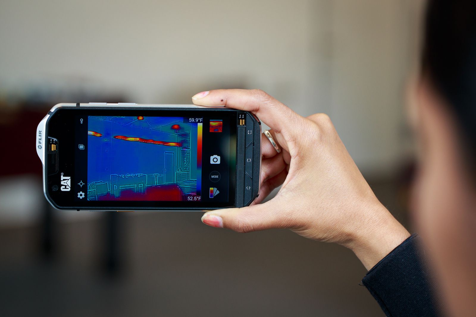 Cat 60 is a very tough phone. It can survive 6-foot drops and can survive up to 16-foot deep in water. Along with its toughness, it comes with a thermal camera which lets you see the world differently. It will let you visualize the temperature of the objects at different spots and much more.