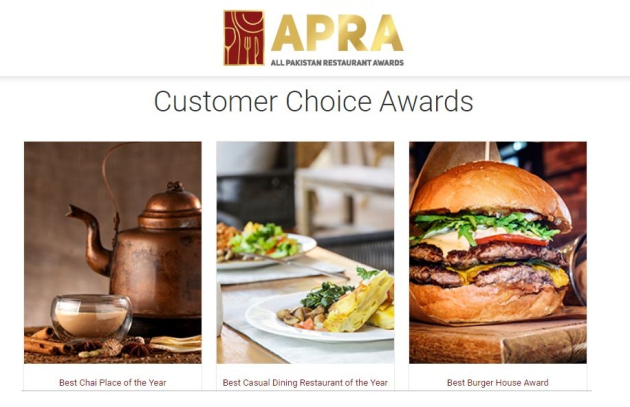 All Pakistan Restaurant Association (APRA), is the only representative body of restaurants and caterers in Pakistan. It is licensed by Directorate General Trade Organization (DGTO), Ministry of Commerce and Government of Pakistan. After a thorough selection process, the APRA jury announced the nominations for 17 Customer Choice Awards on Saturday, 10th August.