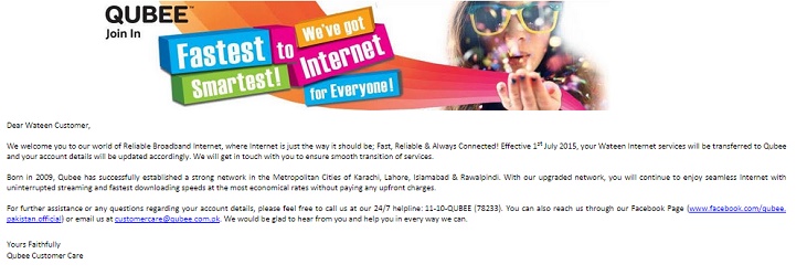 An email has been making rounds into the inbox of Wateen customers. There are no official announcements on either company websites, but we can assume that an announcement is bound to happen anytime in the future. The email informs Wateen customers that Qubee will be their new WiMax provider.