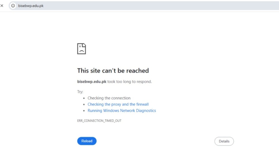 Update: The BISE Faisalabad website appears to have been restored after a prolonged crash but the BISE Bahawalpur site remains inaccessible.