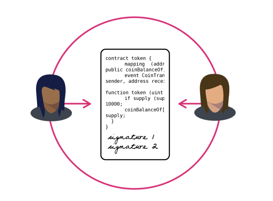 Smart contracts in Ethereum work as they sound. Multiple users can agree on certain terms and sign them digitally, when the preset conditions of the contract are fulfilled, the contract is automatically executed. This means that users can automatically carry out transactions or perform some specific action on the blockchain. An example of this would be selling shares to someone if the share prices rise or drop to some certain level.
