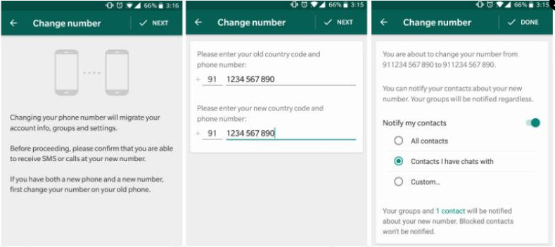 Users can now even narrow this down to contacts they’ve had chats with or any specific contacts. To use this feature of change number, you can go to the WhatsApp Settings and then Account and then select Change Number. It can be shown in the image below.