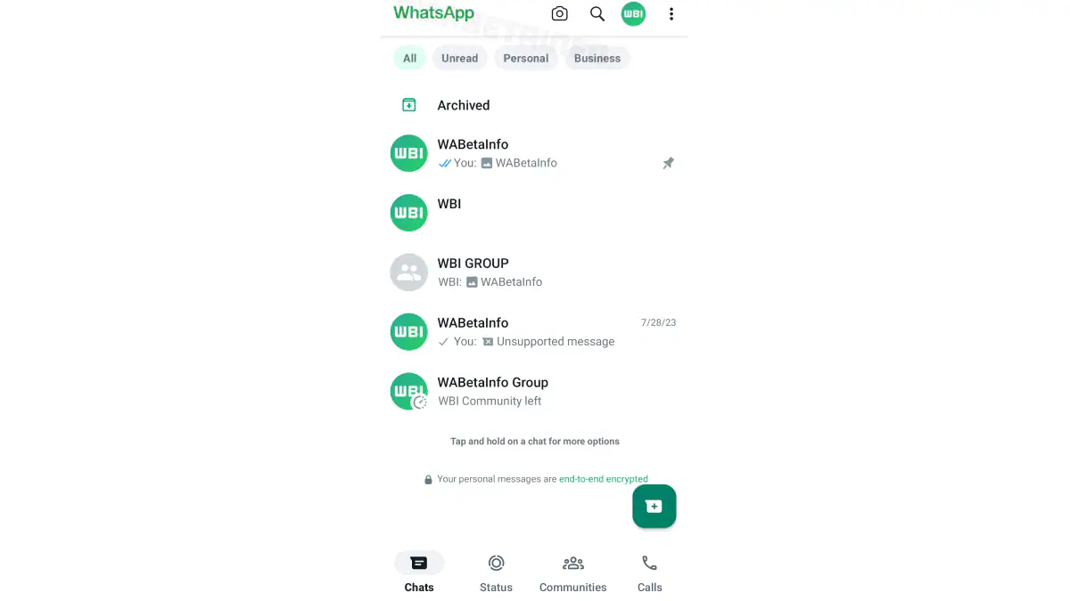 Screenshots of the WhatsApp Android Beta shows the top bar almost matching up the rest of the app’s white color, with only a thin shadow separating the two. WhatsApp’s logo, which currently has a white color on the official app is switched to green.