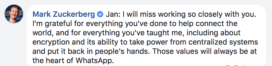 All these disputes may likely have made Jan Koum to bid farewell to Facebook. With both of the founders gone from the company, it is unknown what shape WhatsApp would take in the coming future. Not to mention, Mark Zuckerberg commented on the original post admiring the idea of encryption and that it would “always be the heart of WhatsApp.”