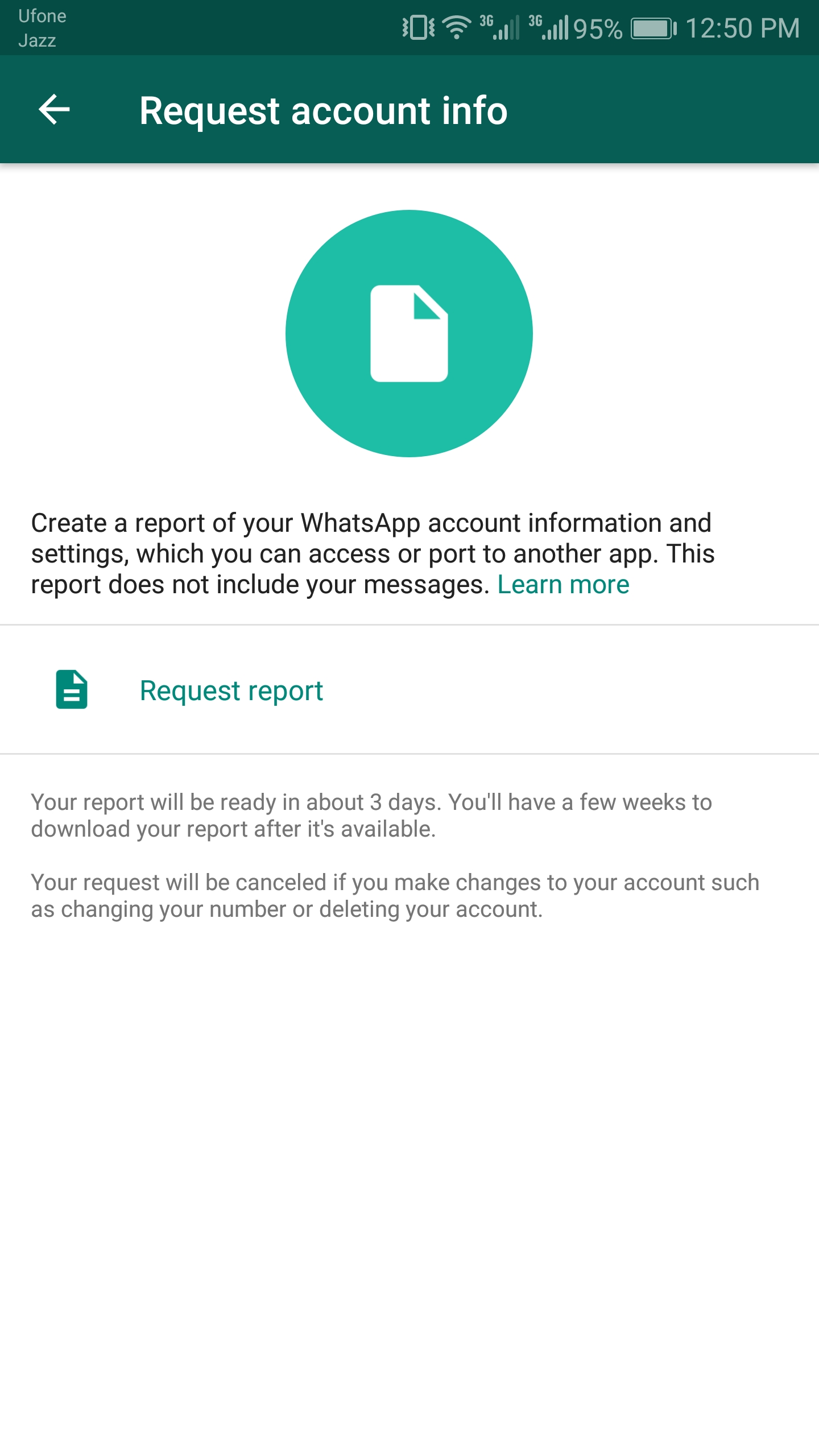 Whatsapp says that the report will be canceled if the user makes any changes in their account. Changes such as deleting their WhatsApp account or changing the phone number.