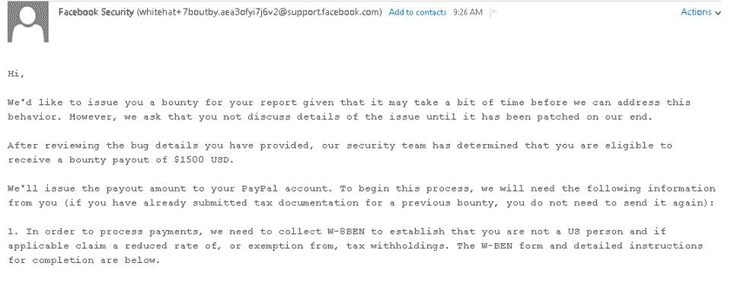 White Hat Bug Reporting: How a Hacker Received $33,500 and a Job Offer by Facebook