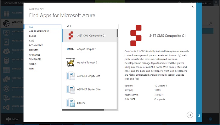 Here is a view to the azure gallery in portal.